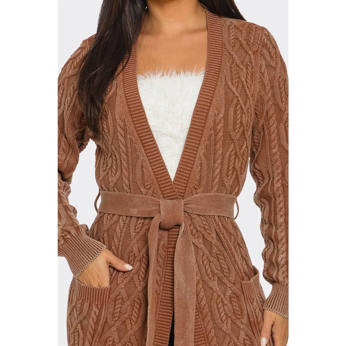 Cable Knit Belted Cardigan